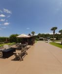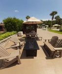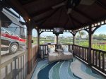 Lot 717 Lago Way welcomes you with premium amenities that will make you want to extend your stay! Enjoy your dining pleasures outdoors on this North facing lake front lot with an oversized dining table, an umbrella, four chairs, and a side bench. When your day comes to an end and you want to unwind, take comfort seated around a beautiful fire pit and share stories about your day! Additionally, what better way to enjoy the beautiful sun sets than sitting together on a double bench glider! Within the screened in gazebo additional seating and side tables await, including comfortable side by side cushioned chairs, and a small television for your favorite variety show! There are also two folding loungers in the gazebo waiting to be used! These interior accommodations make a cozy setting for your morning coffee, or evenings with your spirited beverage! This property offers enhanced landscaping including a beautifully laid out retaining wall on the water’s edge where you can view one of our luxury cascading waterfalls. This lot also offers extra patio space on the South side of the gazebo that can also be used for your golf cart, motorcycle, or bicycles! When available, propane for the firepit is sold separately in the Welcome Center.