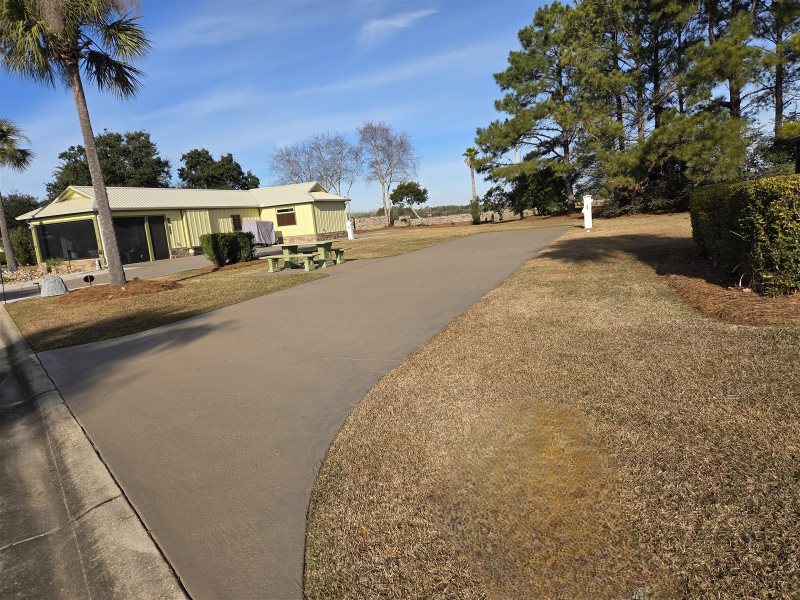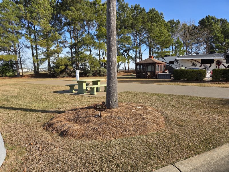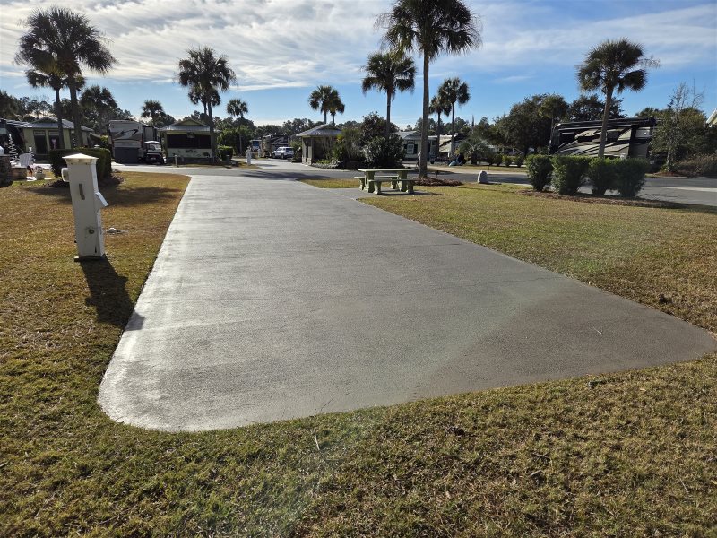 This South facing lot features a 70’ concrete pad with additional patio space offering an oversized concrete table and two side benches. Enjoy a close walk to our clubhouse for our 5-star amenities and all our events and activities. This is the perfect lot for those who also want to be close to our luxury infinity edge pool and Welcome Center. Additionally, if you are traveling with pets this is great location just a hop, skip, and jump to one of our fenced in dog parks!