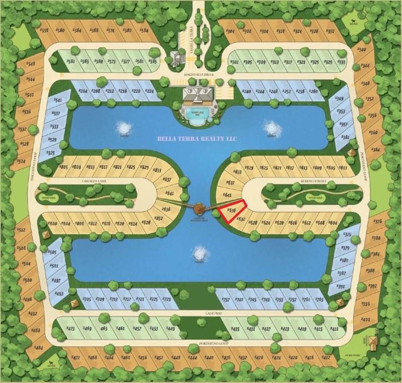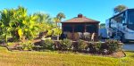 This premium Coach Estate lot is located on the resort's East peninsula with a Southwest exposure offering up spectacular sunset views across the lake. The site features a 10' x 14' gazebo equipped with Vinyltech windows, drapes and a ceiling fan allowing for year-round use. The gazebo also includes a Haushof portable air conditioner and a Frigidaire compact refrigerator/freezer. The generous lakeside patio is the perfect spot to enjoy outdoor dining with friends and includes a large table with six cushioned, swivel chairs and an umbrella for added shade. Other features include a stacked block retaining wall, custom irrigated landscaping and a brick-paved spot perfect for golf cart or motorcycle parking. There is ample space to add upgrades such as an outdoor kitchen or casita. Parcel is a fee-simple deeded property offering 3,814 sq ft.