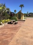 Welcome to 625 Sereno Street! This North facing property offers an exceptionally large patio space with room for you to set up additional personal belongings. Enjoy outdoor dining on the oversized concrete table and extended benches. Inside the screened in gazebo you can relax comfortably in the two chairs provided; or feel free to carefully furnish your own seating. This lavish site offers beautiful enhanced landscaping including mature palm trees exclusive to this lot. This property offers lakefront views including soft ambiance lighting from the Bella Terra pool deck across the water. Storage unit is reserved for owner use only.