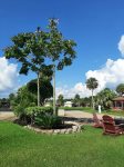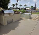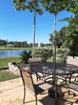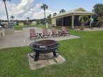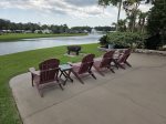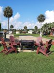 This beautiful South facing lake front lot offers mature foliage for added privacy while still offering grand views of the lakefront. A wrought iron table with seating for four is available for outdoor dining and entertainment. As an addition to your dining experience, the charcoal grill is available for that extra special flavoring and there is plenty of counter space to prep and prepare your favorite meals! After a fun filled day exploring the area, lean back and relax in Adirondack chairs nestled around a wood burning fire pit. This lot is located on our East side peninsula and has a wonderful view of one of our cascading water fountains. As you head out for a stroll, use our public hand paved walkway through the grand centerpiece gazebo for a quick short cut over the lake! Guests are permitted to burn natural, untreated wood in the fire pit. Wood and charcoal for the grill are not available for purchase at Bella Terra. Please note the covered golf cart pictured is not available for guest use.
